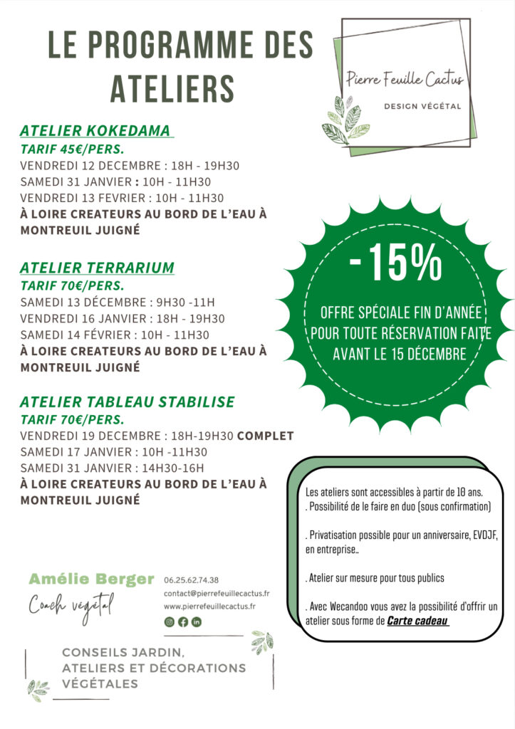 Vous pouvez aussi me contacter pour privatiser un atelier chez vous ou pour un événement festif (anniversaire enfant, mariage, EVJF…)